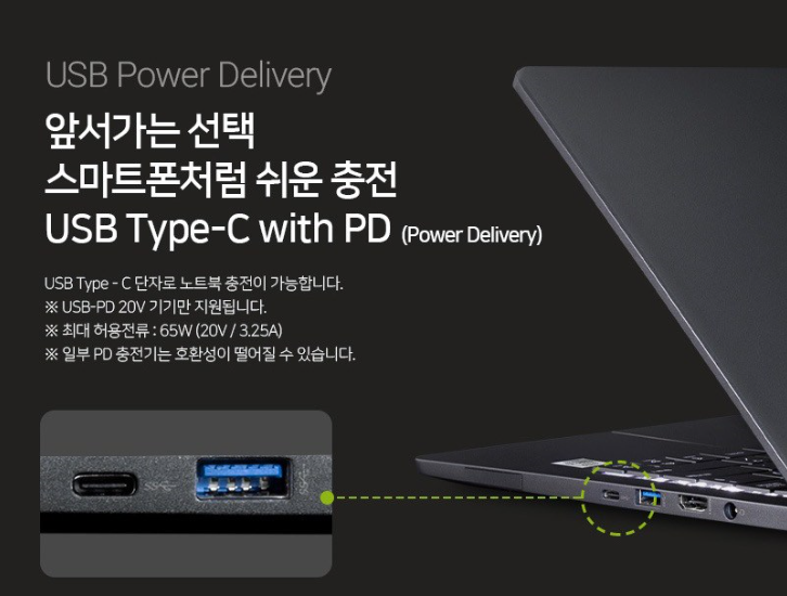 카페나 공항에서 한참 노트북중에 배터리가 없다 ? ! 핸드폰충전기[C타입]를 연결하시면 충전이가능합니다!