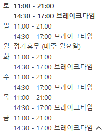 휴일 및 영업시간 : [@매주 월요일 정기휴무 입니다 !]