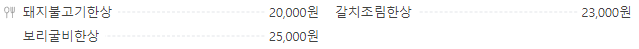 요렇게가 돼지불고기한상 [2인분] 메뉴 입니다 !