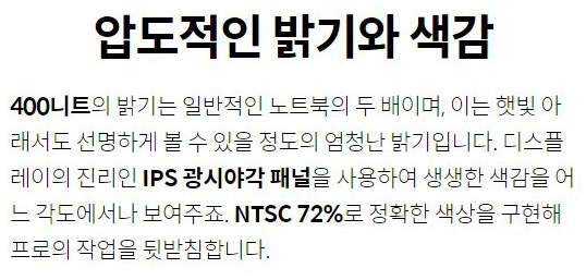 디스플레이 : 약14인치 / 250니트 / FHD NTSC 45% IPS-level패널